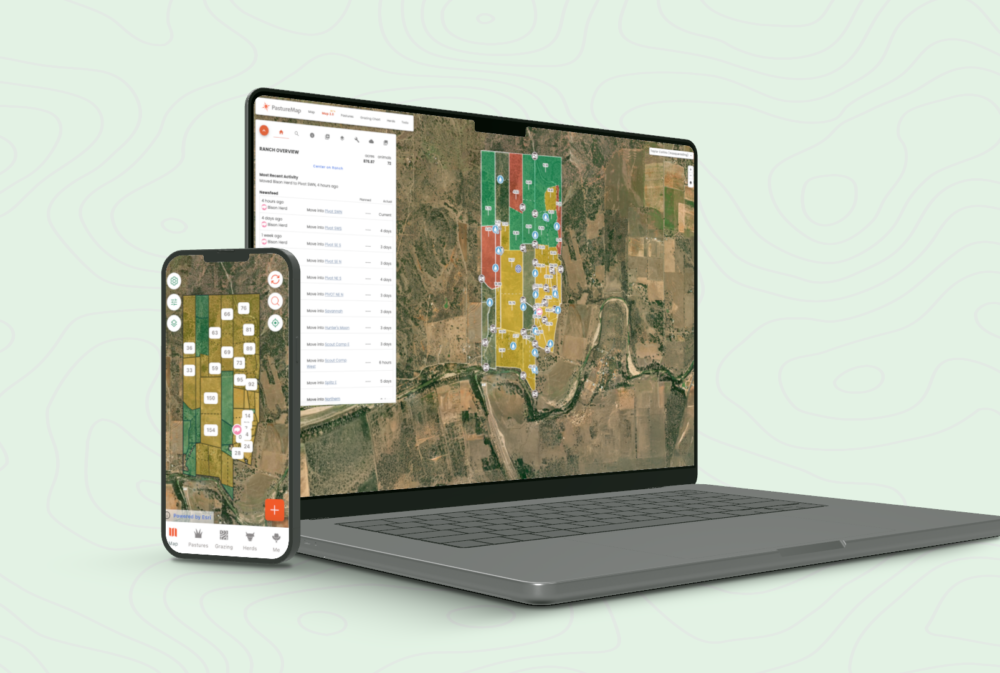 PastureMap+ is the updated mobile app from Grassroots Carbon that brings faster data syncing across desktop and mobile, improved mobile mapping capabilities, more precise subdivision management and improved grazing records management.